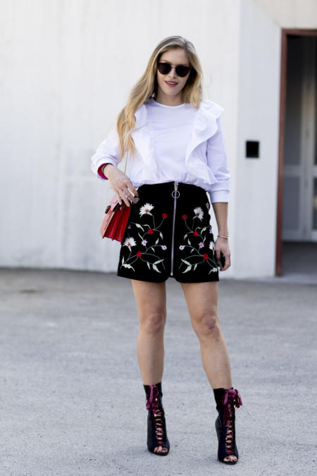 Dla fanek kontrastowych zestawień polecamy noszenie kwiecistej sukienki w duecie z ciepłych okryciem wierzchnim np. kożuchem lub futerkiem. To pomysł Alexandra McQueena i Simone Rocha. Niekoniecznie oba elementy muszą być ozdobione ludowym motywem! Spokojnie możesz ze sobą łączyć zupełnie odmienne style, np. folklorystyczną kreację z rockowym kożuszkiem. Gwarantujemy, że dzięki temu ten trend będzie wyglądał bardzo współcześnie.