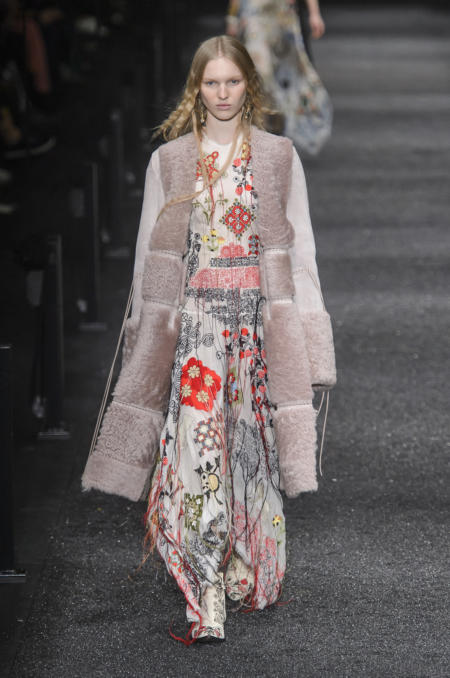 W sezonie jesień-zima 2017/18 projektanci szukali inspiracji na spokojnej wsi. Wiele marek przeniosło ludowe motywy do swoich kolekcji, tak więc pojawiły się kwiatowe nadruki i bogato zdobione hafty. Nie zabrakło również żywych barw, takich jak czerwień, pomarańcz, żółć, czy niebieski. Futro, kożuch, frędzle i złote akcenty – one dopełniają folklorystyczne stroje. Cepelia na całego!