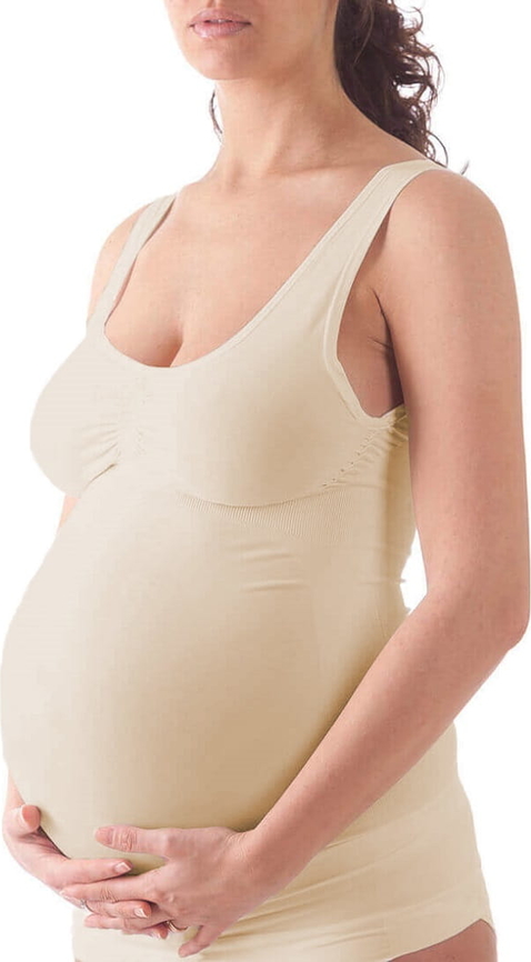 Podkoszulek ciążowy bezszwowy renomowanej włoskiej marki. Wygodny podkoszulek bezszwowy z elastycznej tkaniny w beżowym kolorze. Specjalnie zaprojektowane podkoszulki dla kobiet w ciąży znajdziesz w Tit Ti. Podkoszulek ciążowy bezszwowy beżowy