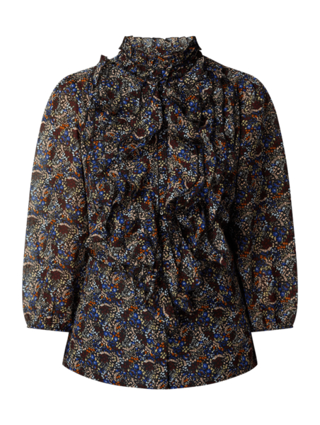 Bluzka damska Saint Tropez, Szyfon, Taliowany krój, Wzór na całej powierzchni, Falbaniasta stójka, Rękaw o dł. 3/4, Listwa guzikowa, Falbana, Długość tyłu w rozmiarze S: 61 cm