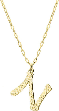 Damski naszyjnik z literką N o oryginalnej fakturze, utrzymany w minimalistycznej formie. Litera zawieszona na łańcuszku o długości 45 cm + 3 cm regulacji. Wykonany z hipoalergicznej stali szlachetnej 316L. Pozłacany innowacyjną i trwałą metodą PVD.