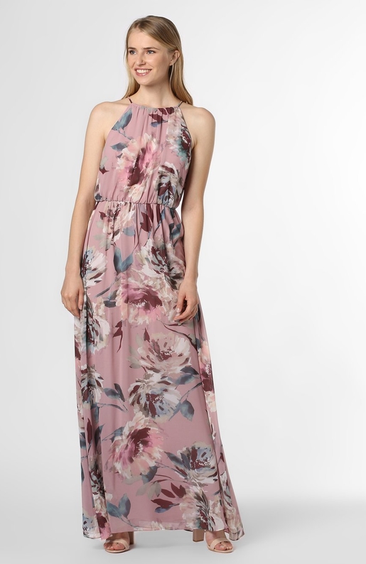 Delikatne ramiączka i wygodna wstawka z gumki w talii sprawiają, że sukienka wieczorowa w kwiaty marki Marie Lund urzeka stylową formą.