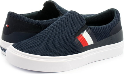 Męskie obuwie typu slipon od marki Tommy Hilfiger. Cholewka została wykonana z wysokogatunkowego, przewiewnego materiału tekstylnego. Miękkie, materiałowe wnętrze zapewnia komfort użytkowania przez cały dzień. Lekka podeszwa z tworzywa gwarantuje optymalną amortyzację oraz przyczepność. Model z serii Light zapewnia doskonały komfort użytkowania przy bardzo niskiej wadze buta. Polecamy!