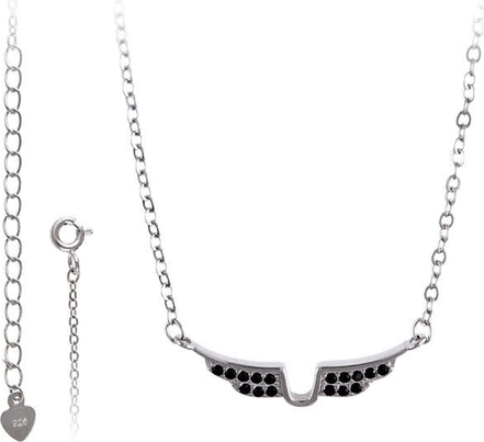 Elegancki rodowany srebrny naszyjnik gwiazd ze skrzydem anioła zdobionym czarnymi cyrkoniami, model FN340.