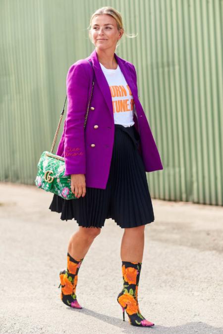 Przekornie zakładaj koszulkę z napisem do eleganckiego garnituru, np. kompletu w mocnym kolorze lub wzorze. Szpilki i szykowna torebka sprawią, że całość będzie wyglądać niezwykle szykownie. Taki outfit sprawdzi się w wielu sytuacjach! Warto zamienić spodnie na spódnicę – ołówek albo rozkloszowany fason, dzięki temu look będzie bardziej kobiecy, zmysłowy. Ważną rolę będą odgrywać dodatki, ponieważ te niewielkie akcesoria potrafią zupełnie zmienić charakter sportowego T-shirtu!